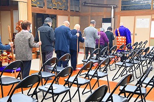 法要終了後に行われる四国88ヶ所お砂踏みの模様です
