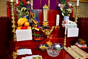本堂前にある水子地蔵尊もお供えと荘厳が整い