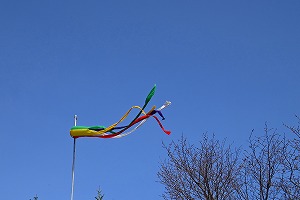 晴天に恵まれ、吹き流しものぼり旗も準備万端