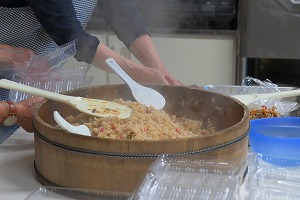 この度の行事でも、婦人会や日和会の方々にお手伝いいただき、お弁当作